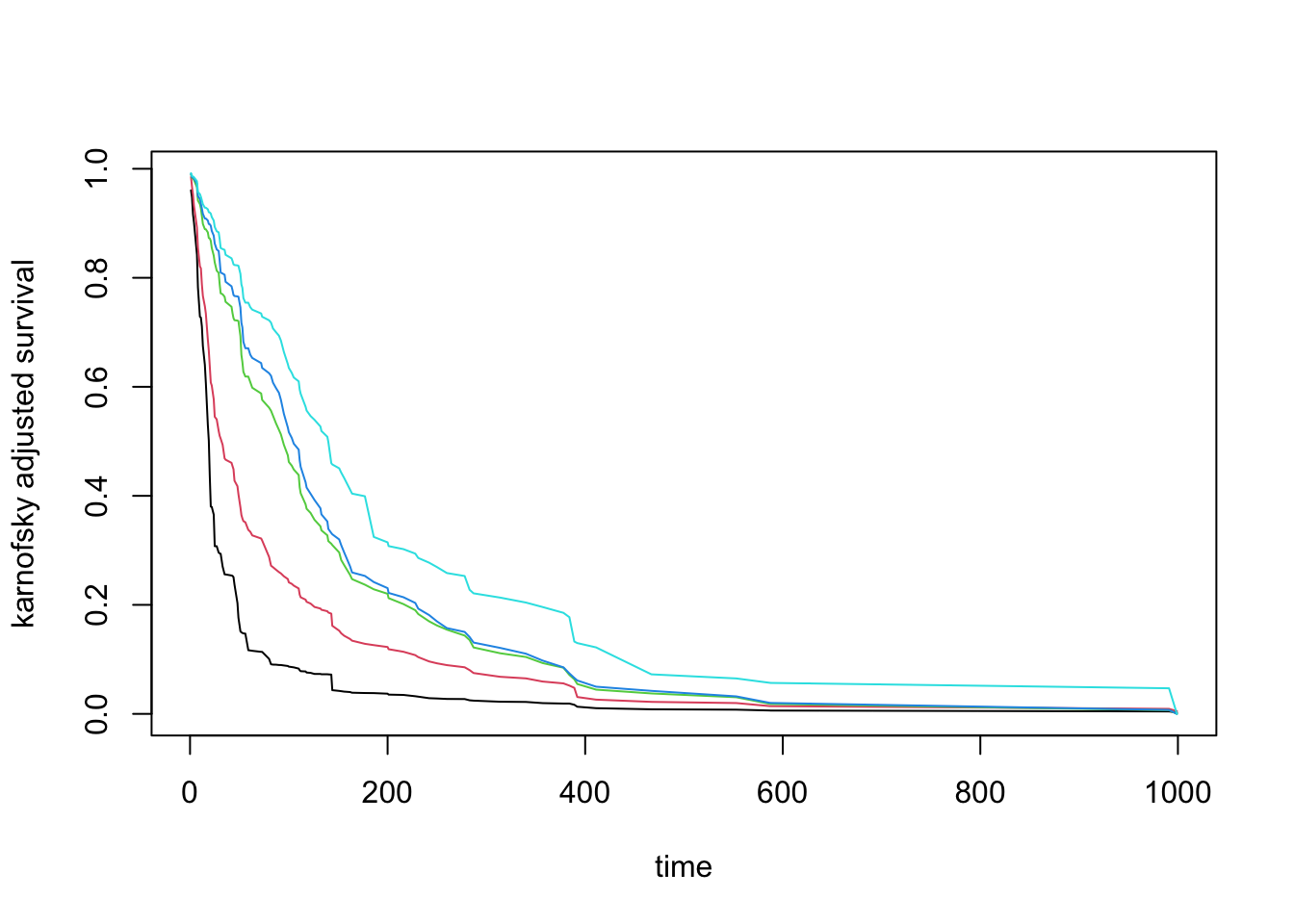 A very useful application when checking partial effects is to see the action of different variables in normality effects, for example seeing how the Karnofsky scale is associated with patient mortality.